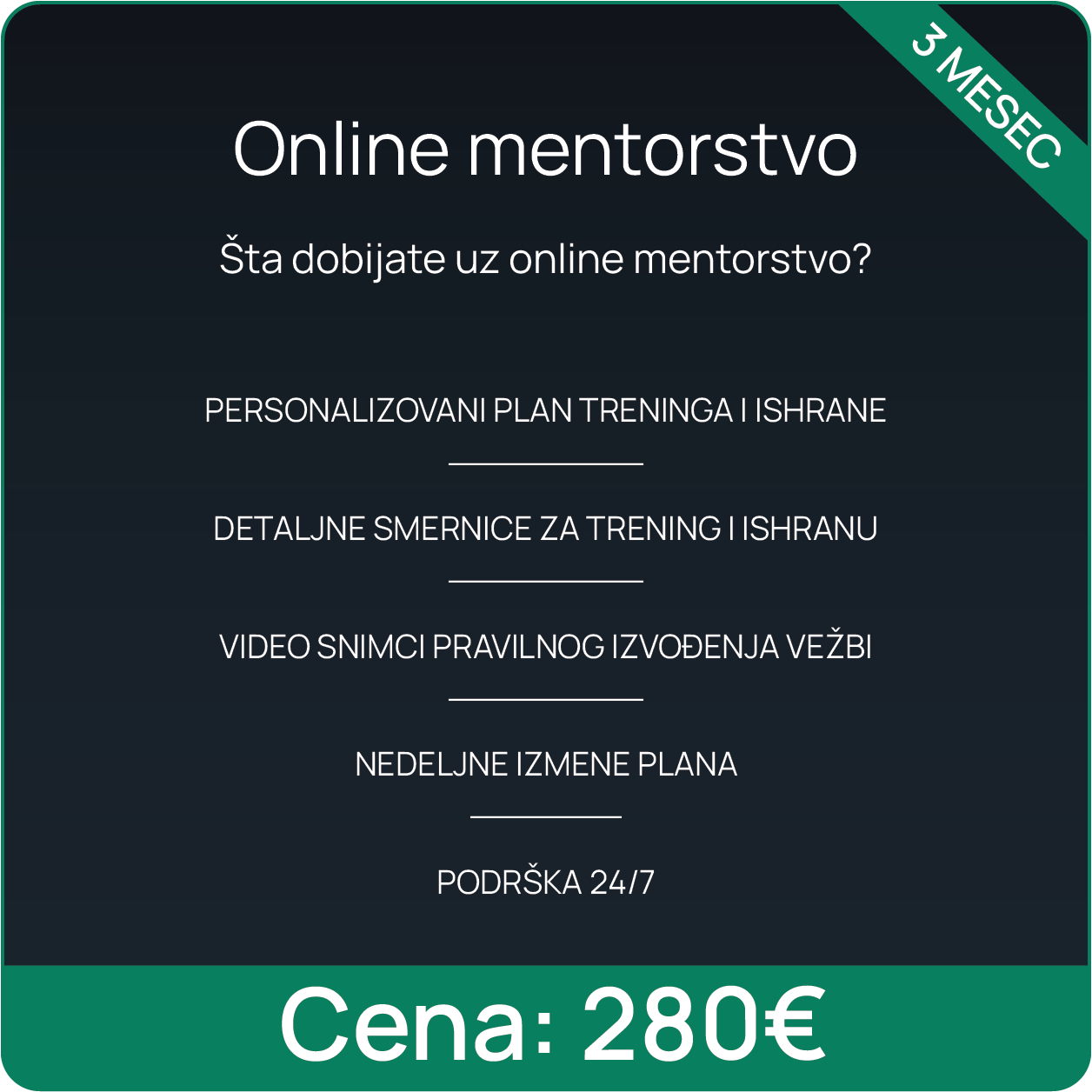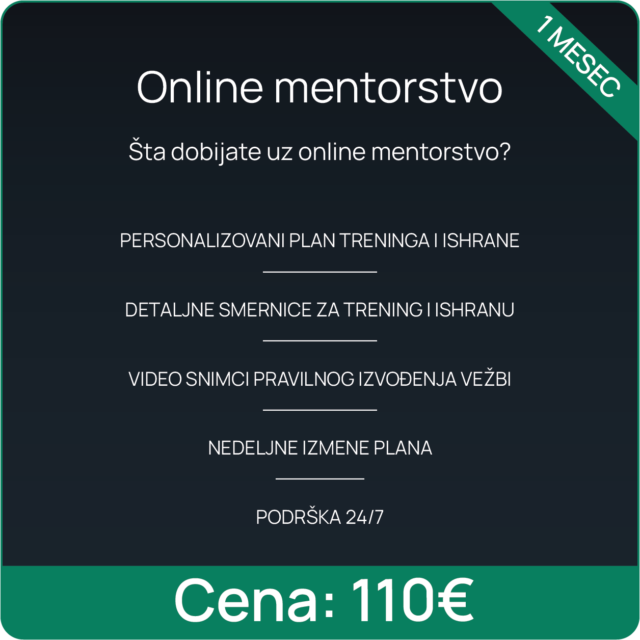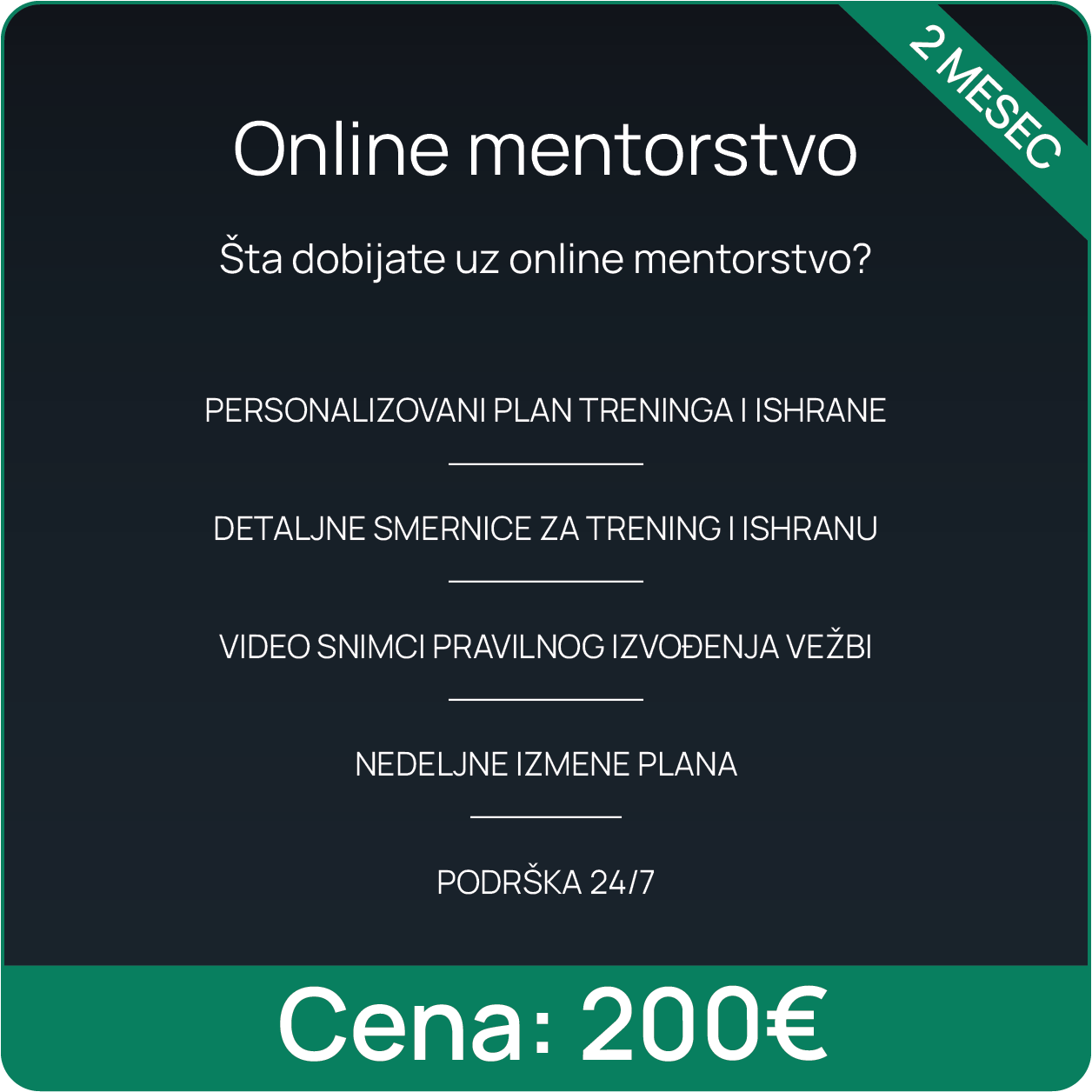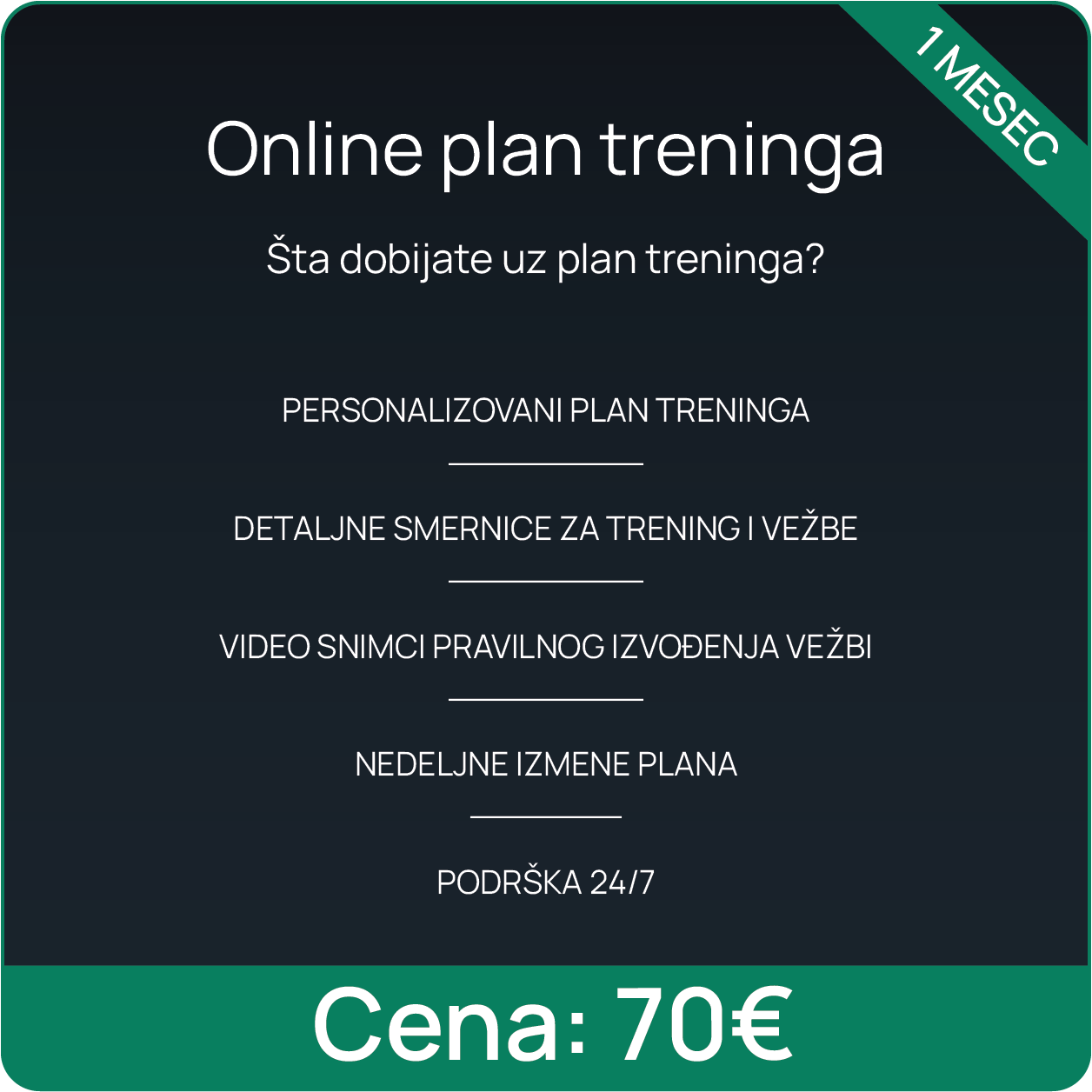 Uz individualni plan treninga i ishrane, stručnu podršku i praćenje napretka, dobijate jasno vođenje do sigurnih rezultata.